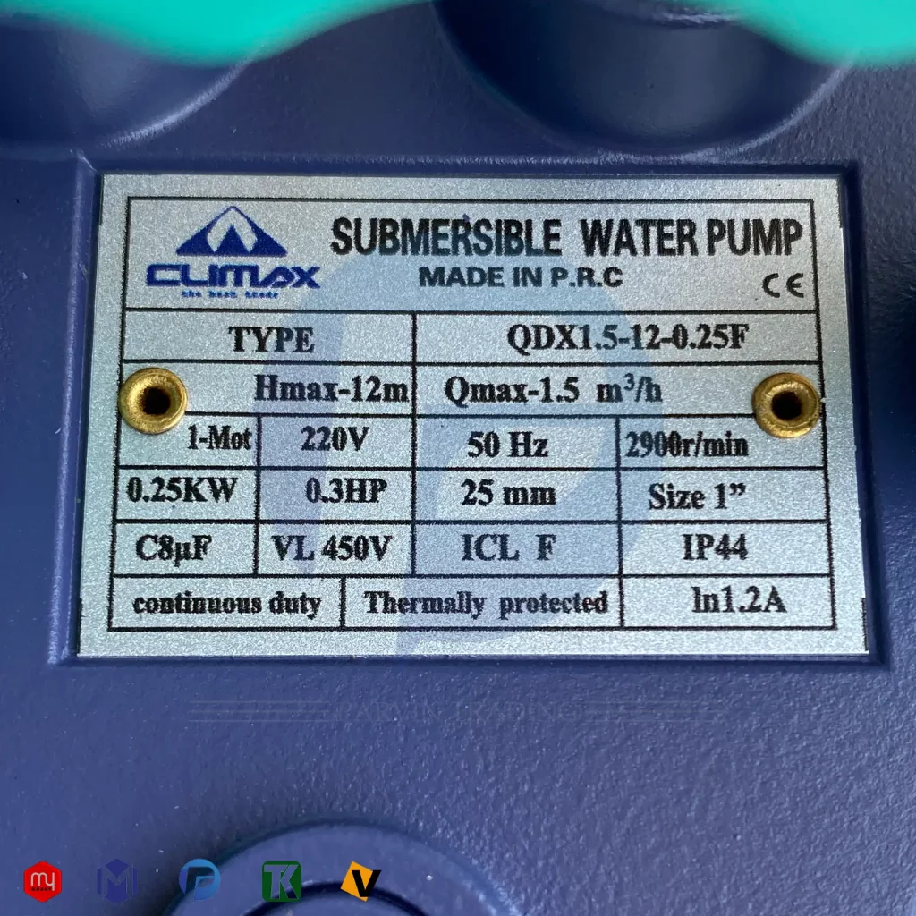 کفکش کلایمکس 12 متری مدل CLIMAX QDX1.5-12-0.25F مناسب چاه های اب صاف و متراژ 2 الی 10 متر میباشد.